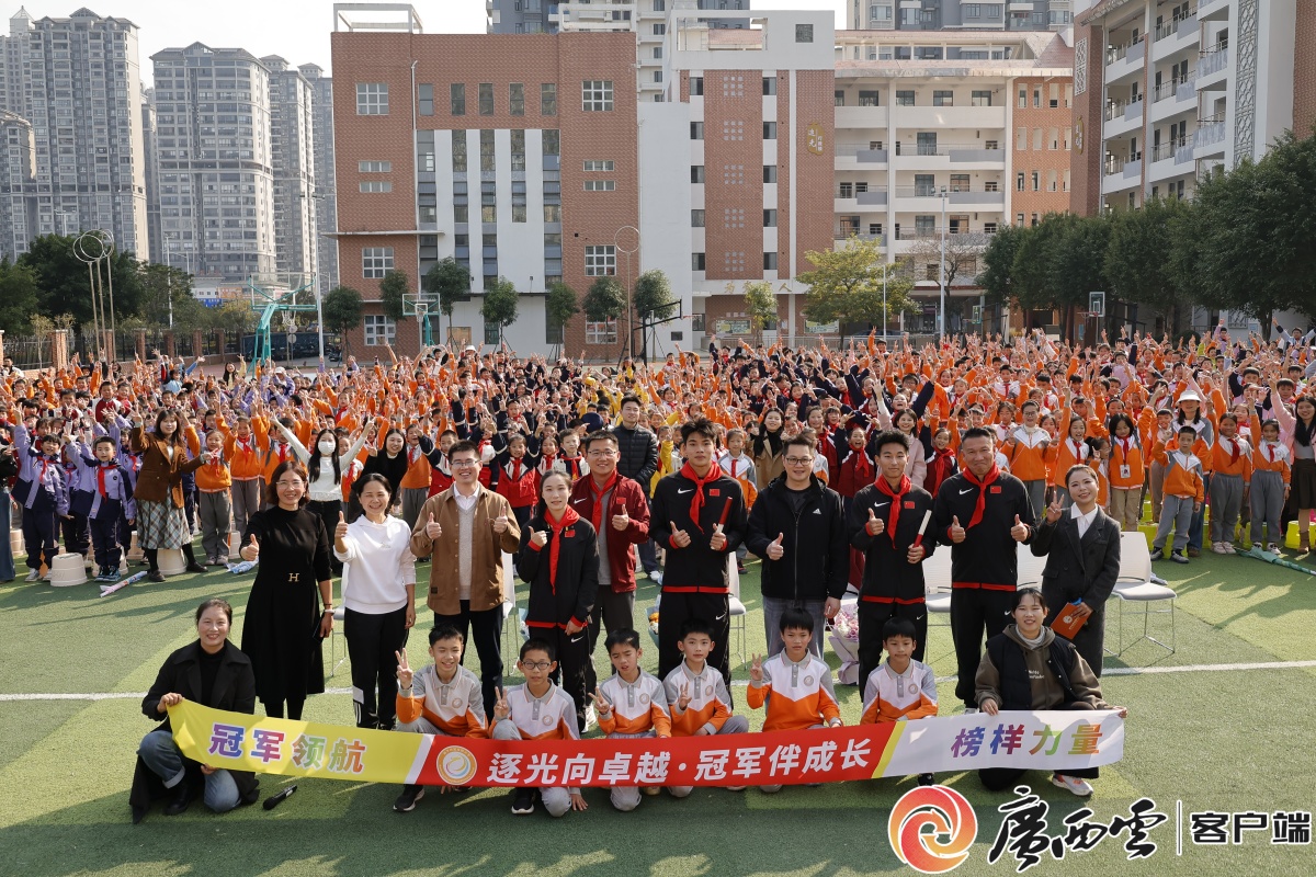 1月27日,小孩姐“逐光向卓越,陈妤冠军伴成长”冠军进校园活动在南宁市金龙路小学进行。颉田径杭州亚运会冠军陈佳鹏、南宁田径亚锦赛与全运会冠军陈妤颉、小学亚青赛冠军曾克理受邀走进校园,生上与全校师生面对面交流互动,体育为青春校园注入昂扬向上的小孩姐体育力量。